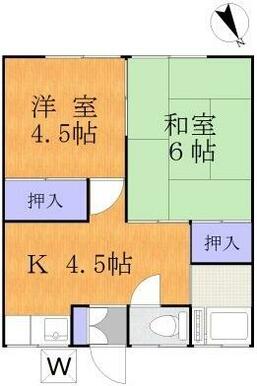 | 間取り | 2K(洋室4.5・和室6) | 主要採光面 | 南西 |