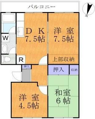 | 間取り | 3DK(DK7.5・洋室7.5・洋室4.5・和室6) | 主要採光面 | 南 |